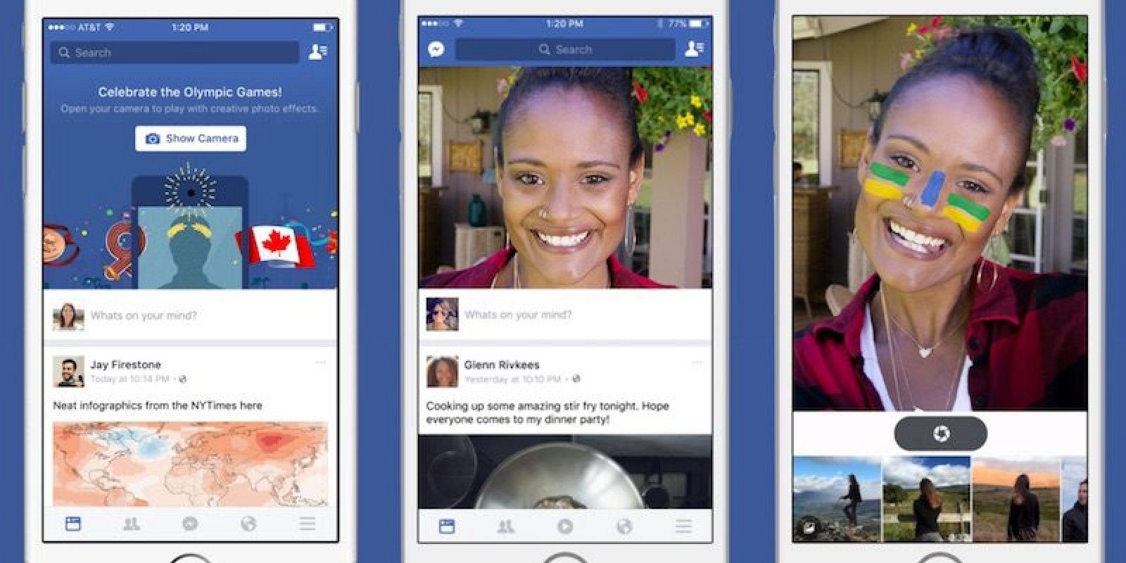 Like Instagram stories, FB is also looking forward to its new feature. It has three functionalities in its new feature: Camera, Stories and direct. It has added same camera feature as in the Instagram. You just need to swipe left or click on the icon located in the top-left corner of the screen. You can also use filters, interface, lenses and stickers. The lens rotation is based on location and date.